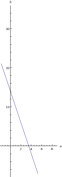 Valid solutions must be in the top left quadrant of the cartisian plane, since we need a and b to both be positive.