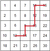 Complexity: O(n+m) time. Consider the worst case occurance of the element on the bottom-left. O(1) space.